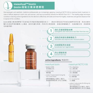 biotin增髮注養滲透療程不但成為近年突破性極速增髮技術之一,更成功登陸2017年IMCAS國際性研討會。各地皮膚科醫生及美容界專業醫學人士實證,延長毛囊生長期;同時活化衰落細胞,增強血管輸養能力,加速頭髮生長,改善規律性脫髮問題
